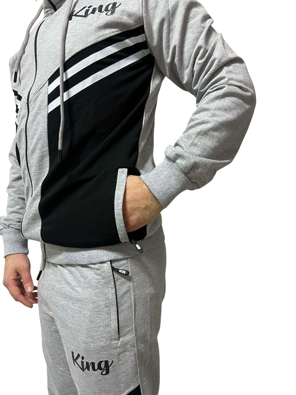 Αθλητικό Σετ Φόρμας Slim Fit Γκρι V-King VK8146-58