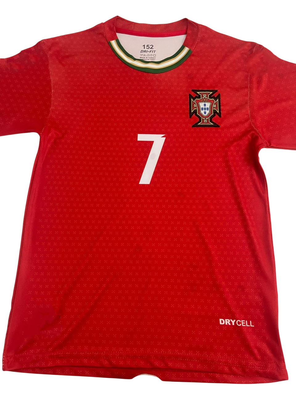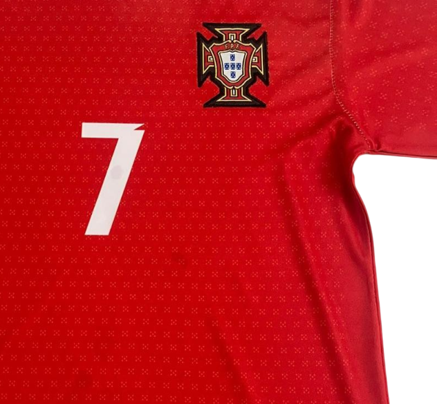 Φανέλα της εμφάνισης της ομάδας ποδοσφαίρου της Πορτογαλίας σε κόκκινο χρώμα . Διαθέτει τεχνολογία υφάσματος που απωθεί τον ιδρώτα , ανάγλυφο σχέδιο και ραμμένο εθνόσημο .